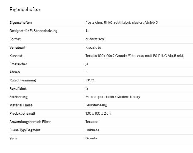 StartseiteFliesenGRANDEGRANDE hellgrau matt. Quantity of products in cart must be 10 or moreGRANDE hellgrau matt.CHF71,40 / m2wählen Wählen Sie eine Option100 x 100 x 2 cmLeerenWählen Sie die Menge als Quadratmeter aus: GRANDE hellgrau matt. Menge Buy now Artikelnummer: n. a. Kategorien: Fliesen, GRANDE Product ID: 25340 Beschreibung Zusätzliche Information Bewertungen (0) BeschreibungZusätzliche Informationwählen100 x 100 x 2 cm BewertungenEs gibt noch keine Bewertungen. Schreiben Sie die erste Bewertung für «GRANDE hellgrau matt.» Antworten abbrechenIhre E-Mail-Adresse wird nicht veröffentlicht. Erforderliche Felder sind mit * markiertName *E-Mail * Meinen Namen, meine E-Mail-Adresse und meine Website in diesem Browser für die nächste Kommentierung speichern.Ihre Bewertung *Bewertung…AusgezeichnetGutDurchschnittlichNicht ganz schlechtSehr schlecht Ihre Rezension * I agree that my submitted data is being collected and stored.Please enter an answer in digits:3 × three = Ähnliche Produkte NATURAL WOODS grau matt. CHF51,70 – CHF70,00 / m2 Buy now Dieses Produkt weist mehrere Varianten auf. Die Optionen können auf der Produktseite gewählt werden UNLIMITED grau. CHF42,00 – CHF105,85 / m2 Buy now Dieses Produkt weist mehrere Varianten auf. Die Optionen können auf der Produktseite gewählt werden UNLIMITED beige. CHF56,25 – CHF105,85 / m2 Buy now Dieses Produkt weist mehrere Varianten auf. Die Optionen können auf der Produktseite gewählt werden UNLIMITED anthrazit. CHF56,25 – CHF105,85 / m2 Buy now Dieses Produkt weist mehrere Varianten auf. Die Optionen können auf der Produktseite gewählt werden