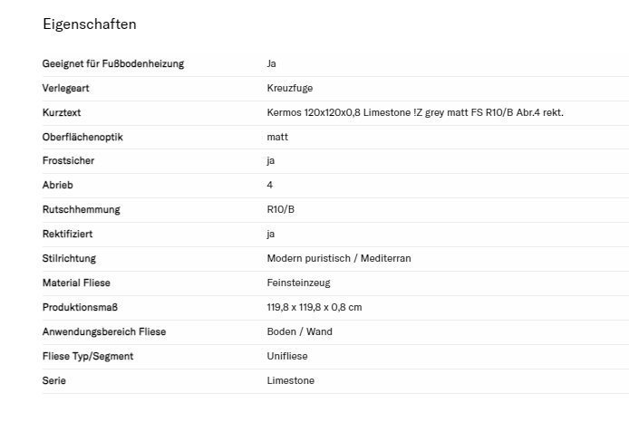 StartseiteFliesenLIMESTONELIMESTONE grey matt .LIMESTONE grey matt .CHF30,25 – CHF50,40 / m2wählen Wählen Sie eine Option30 x 60 x 0,8 cm60 x 60 x 0,8 cm60 x 120 x 0,8 cm120 x 120 x 0,8 cmLeerenWählen Sie die Menge als Quadratmeter aus: LIMESTONE grey matt . Menge Buy now Artikelnummer: n. a. Kategorien: Fliesen, LIMESTONE Product ID: 25127 Beschreibung Zusätzliche Information Bewertungen (0) BeschreibungZusätzliche Informationwählen30 x 60 x 0,8 cm, 60 x 60 x 0,8 cm, 60 x 120 x 0,8 cm, 120 x 120 x 0,8 cm BewertungenEs gibt noch keine Bewertungen. Schreiben Sie die erste Bewertung für «LIMESTONE grey matt .» Antworten abbrechenIhre E-Mail-Adresse wird nicht veröffentlicht. Erforderliche Felder sind mit * markiertName *E-Mail * Meinen Namen, meine E-Mail-Adresse und meine Website in diesem Browser für die nächste Kommentierung speichern.Ihre Bewertung *Bewertung…AusgezeichnetGutDurchschnittlichNicht ganz schlechtSehr schlecht Ihre Rezension * I agree that my submitted data is being collected and stored.Please enter an answer in digits:6 + fifteen = Ähnliche Produkte OPERA white marmoriert. CHF37,80 – CHF42,00 / m2 Buy now Dieses Produkt weist mehrere Varianten auf. Die Optionen können auf der Produktseite gewählt werden NATURAL WOODS grau matt. CHF51,70 – CHF70,00 / m2 Buy now Dieses Produkt weist mehrere Varianten auf. Die Optionen können auf der Produktseite gewählt werden Newcon dunkelgrau CHF10,05 – CHF14,50 / m2 Buy now Dieses Produkt weist mehrere Varianten auf. Die Optionen können auf der Produktseite gewählt werden LIMESTONE cream matt. CHF30,25 – CHF50,40 / m2 Buy now Dieses Produkt weist mehrere Varianten auf. Die Optionen können auf der Produktseite gewählt werden