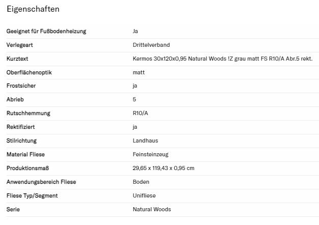 StartseiteFliesenNATURAL WOODSNATURAL WOODS grau matt. Quantity of products in cart must be 10 or moreNATURAL WOODS grau matt.CHF51,70 – CHF70,00 / m2wählen Wählen Sie eine Option20 x 120 x 0,95 cm30 x 120 x 0,95 cmLeerenWählen Sie die Menge als Quadratmeter aus: NATURAL WOODS grau matt. Menge Buy now Artikelnummer: n. a. Kategorien: Fliesen, NATURAL WOODS Product ID: 25041 Beschreibung Zusätzliche Information Bewertungen (0) BeschreibungZusätzliche Informationwählen20 x 120 x 0,95 cm, 30 x 120 x 0,95 cm BewertungenEs gibt noch keine Bewertungen. Schreiben Sie die erste Bewertung für «NATURAL WOODS grau matt.» Antworten abbrechenIhre E-Mail-Adresse wird nicht veröffentlicht. Erforderliche Felder sind mit * markiertName *E-Mail * Meinen Namen, meine E-Mail-Adresse und meine Website in diesem Browser für die nächste Kommentierung speichern.Ihre Bewertung *Bewertung…AusgezeichnetGutDurchschnittlichNicht ganz schlechtSehr schlecht Ihre Rezension * I agree that my submitted data is being collected and stored.Please enter an answer in digits:five − 1 = Ähnliche Produkte OPERA white marmoriert. CHF37,80 – CHF42,00 / m2 Buy now Dieses Produkt weist mehrere Varianten auf. Die Optionen können auf der Produktseite gewählt werden UNLIMITED anthrazit. CHF56,25 – CHF105,85 / m2 Buy now Dieses Produkt weist mehrere Varianten auf. Die Optionen können auf der Produktseite gewählt werden NEWCON creme CHF10,05 – CHF14,50 / m2 Buy now Dieses Produkt weist mehrere Varianten auf. Die Optionen können auf der Produktseite gewählt werden NATURAL WOODS braun matt. CHF51,70 / m2 Buy now Dieses Produkt weist mehrere Varianten auf. Die Optionen können auf der Produktseite gewählt werden