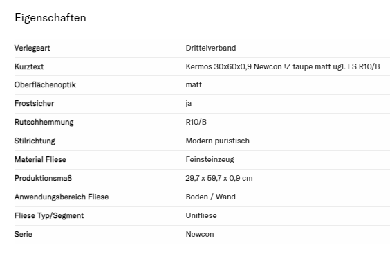 StartseiteFliesenNewconNEWCON taupeNEWCON taupeCHF21,00 – CHF32,35 / m2wählen Wählen Sie eine Option20 x 20 x 9,0 cm30 x 60 x 0,9 cmLeerenWählen Sie die Menge als Quadratmeter aus: NEWCON taupe Menge Buy now Artikelnummer: n. a. Kategorien: Fliesen, Newcon Product ID: 24799 Beschreibung Zusätzliche Information Bewertungen (0) BeschreibungZusätzliche Informationwählen20 x 20 x 9,0 cm, 30 x 60 x 0,9 cm BewertungenEs gibt noch keine Bewertungen. Schreiben Sie die erste Bewertung für «NEWCON taupe» Antworten abbrechenIhre E-Mail-Adresse wird nicht veröffentlicht. Erforderliche Felder sind mit * markiertName *E-Mail * Meinen Namen, meine E-Mail-Adresse und meine Website in diesem Browser für die nächste Kommentierung speichern.Ihre Bewertung *Bewertung…AusgezeichnetGutDurchschnittlichNicht ganz schlechtSehr schlecht Ihre Rezension * I agree that my submitted data is being collected and stored.Please enter an answer in digits:two × five = Ähnliche Produkte LIMESTONE cream matt. CHF30,25 – CHF50,40 / m2 Buy now Dieses Produkt weist mehrere Varianten auf. Die Optionen können auf der Produktseite gewählt werden FLAKESTONE greige matt . CHF14,25 – CHF40,55 / m2 Buy now Dieses Produkt weist mehrere Varianten auf. Die Optionen können auf der Produktseite gewählt werden OPERA blue marmoriert. CHF37,80 – CHF42,00 / m2 Buy now Dieses Produkt weist mehrere Varianten auf. Die Optionen können auf der Produktseite gewählt werden MILA dunkelgrau matt. CHF29,40 – CHF45,60 / m2 Buy now Dieses Produkt weist mehrere Varianten auf. Die Optionen können auf der Produktseite gewählt werden