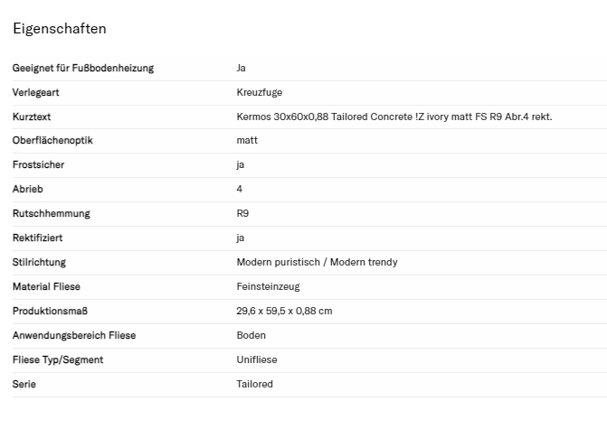 StartseiteFliesenTailoredTAILORED ivory matt. Quantity of products in cart must be 10 or moreTAILORED ivory matt.CHF33,00 – CHF37,00 / m2wählen Wählen Sie eine Option30 x 60 x 0,88 cmLeerenWählen Sie die Menge als Quadratmeter aus: TAILORED ivory matt. Menge Buy now Artikelnummer: n. a. Kategorien: Fliesen, Tailored Product ID: 24751 Beschreibung Zusätzliche Information Bewertungen (0) BeschreibungZusätzliche Informationwählen30 x 60 x 0,88 cm, 60 x 60 x 0,88 cm BewertungenEs gibt noch keine Bewertungen. Schreiben Sie die erste Bewertung für «TAILORED ivory matt.» Antworten abbrechenIhre E-Mail-Adresse wird nicht veröffentlicht. Erforderliche Felder sind mit * markiertName *E-Mail * Meinen Namen, meine E-Mail-Adresse und meine Website in diesem Browser für die nächste Kommentierung speichern.Ihre Bewertung *Bewertung…AusgezeichnetGutDurchschnittlichNicht ganz schlechtSehr schlecht Ihre Rezension * I agree that my submitted data is being collected and stored.Please enter an answer in digits:fifteen + 15 = Ähnliche Produkte FLAKESTONE greige matt . CHF14,25 – CHF40,55 / m2 Buy now Dieses Produkt weist mehrere Varianten auf. Die Optionen können auf der Produktseite gewählt werden UNLIMITED anthrazit. CHF56,25 – CHF105,85 / m2 Buy now Dieses Produkt weist mehrere Varianten auf. Die Optionen können auf der Produktseite gewählt werden FLAKESTONE hellgreige matt. CHF14,25 – CHF40,55 / m2 Buy now Dieses Produkt weist mehrere Varianten auf. Die Optionen können auf der Produktseite gewählt werden Newcon anthrazit CHF10,05 – CHF14,50 / m2 Buy now Dieses Produkt weist mehrere Varianten auf. Die Optionen können auf der Produktseite gewählt werden