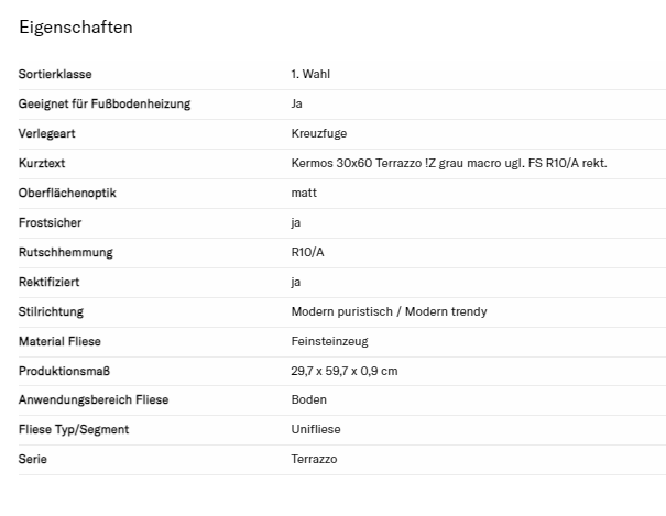 StartseiteFliesenTERRAZZOTERRAZZO grau matt. Quantity of products in cart must be 10 or moreTERRAZZO grau matt.CHF33,60 – CHF37,65 / m2wählen Wählen Sie eine Option30 x 60 x 0,9 cm60 x 60 x 0,9 cmLeerenWählen Sie die Menge als Quadratmeter aus: TERRAZZO grau matt. Menge Buy now Artikelnummer: n. a. Kategorien: Fliesen, TERRAZZO Product ID: 25641 Beschreibung Zusätzliche Information Bewertungen (0) BeschreibungZusätzliche Informationwählen30 x 60 x 0,9 cm, 60 x 60 x 0,9 cm BewertungenEs gibt noch keine Bewertungen. Schreiben Sie die erste Bewertung für «TERRAZZO grau matt.» Antworten abbrechenIhre E-Mail-Adresse wird nicht veröffentlicht. Erforderliche Felder sind mit * markiertName *E-Mail * Meinen Namen, meine E-Mail-Adresse und meine Website in diesem Browser für die nächste Kommentierung speichern.Ihre Bewertung *Bewertung…AusgezeichnetGutDurchschnittlichNicht ganz schlechtSehr schlecht Ihre Rezension * I agree that my submitted data is being collected and stored.Please enter an answer in digits:four × 5 = Ähnliche Produkte OPERA grey marmoriert. CHF37,80 – CHF42,00 / m2 Buy now Dieses Produkt weist mehrere Varianten auf. Die Optionen können auf der Produktseite gewählt werden FLAKESTONE hellgreige matt. CHF14,25 – CHF40,55 / m2 Buy now Dieses Produkt weist mehrere Varianten auf. Die Optionen können auf der Produktseite gewählt werden MILA hellgrau matt. CHF29,40 – CHF45,60 / m2 Buy now Dieses Produkt weist mehrere Varianten auf. Die Optionen können auf der Produktseite gewählt werden Newcon anthrazit CHF10,05 – CHF14,50 / m2 Buy now Dieses Produkt weist mehrere Varianten auf. Die Optionen können auf der Produktseite gewählt werden